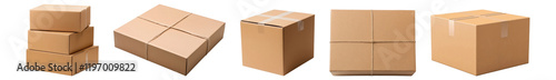 PNG Various cardboard boxes arranged neatly set, isolated on transparent background
