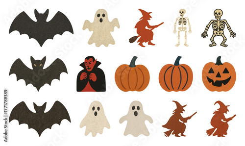 PNG Vintage Halloween cutout decorations, element set on transparent background