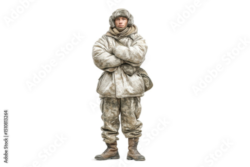 PNG Young caucasian male in winter military outfit standing confidently