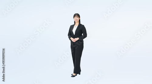 スーツを着た女性ビジネスパーソンの全身写真(切り抜き背景透過PNGも販売しております。↓作成者リンクから「PNG」で検索してください)