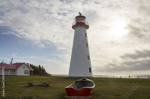 Point Prim Lighthouse, PEI and old wooden rowboat