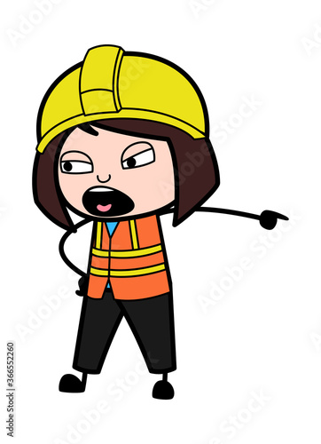 Pointing Lady Engineer Cartoon Illustration