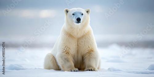 Polar bear sitting peacefully in the snow , Arctic, wildlife, cold, white, mammal, ice, snowy, habitat