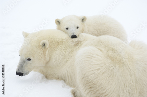Polar Bears Huddled in Snow