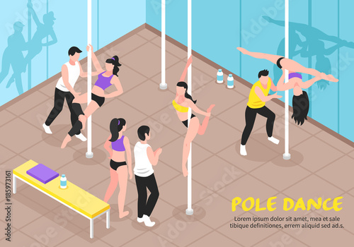 Pole Dance Training Isometric Illustration