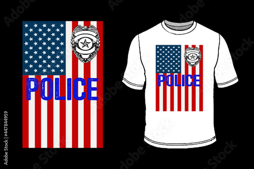 Police T-Shirt With American Flag