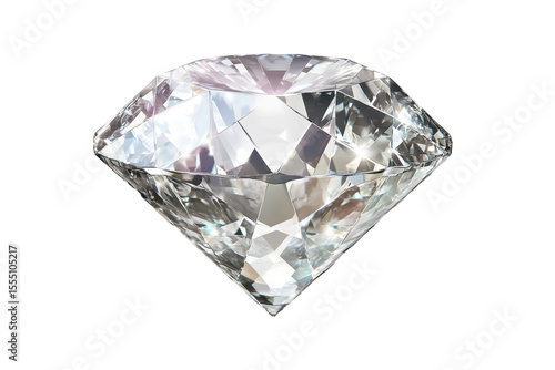 Polished diamond viewed from above showing its brilliant facets and sparkling reflections on a transparent background for jewelry design and luxury themes