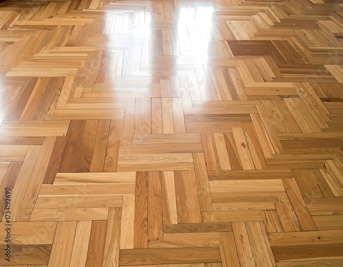 Polished wooden parquet floor