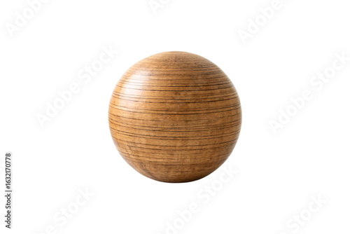 Polished wooden sphere with visible horizontal grain lines and natural wood texture, isolated on a transparent background