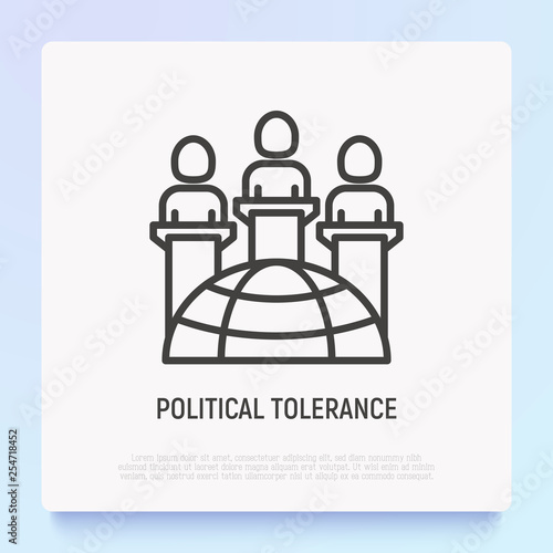 Political tolerance thin line icon: different consignments are respect each other. Modern vector illustration.