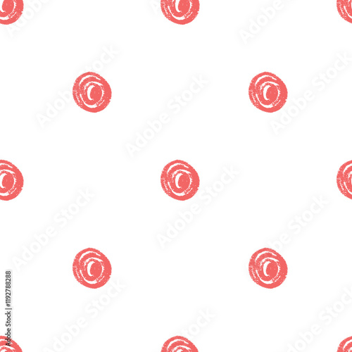 Polka dots seamless pattern crayon drawn. Circle confetti endless background. Birthday round points by pencil repeat cover. Scribble spots marker draw. Vector surface design festive motif.