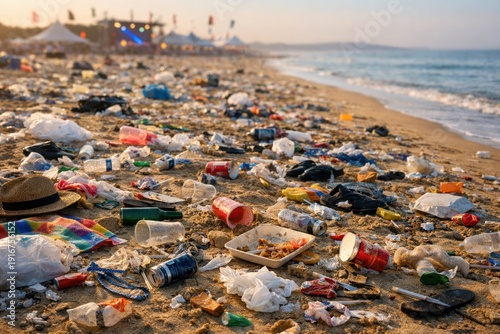 Pollution and Waste on Sandy Beach Ruining Natural Beauty
