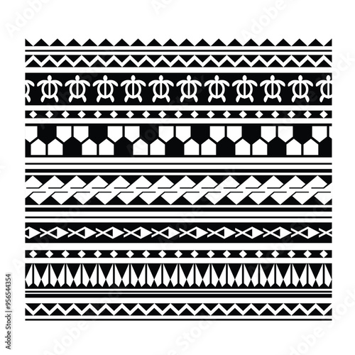 Polynesian tattoo tribal band design. Samoan tattoo tribal ornament border.