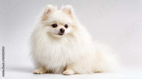 Pomeranian dog photograph, white background