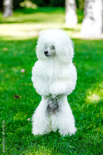 Poodle on a walk in the park