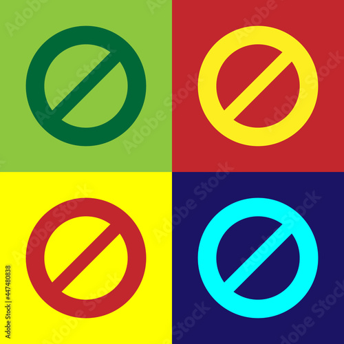 Pop art Ban icon isolated on color background. Stop symbol. Vector