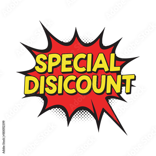 Pop art comic speech bubble with 'special disicount' text message