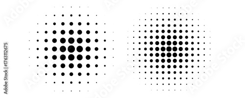 Pop art comic style dotted circle halftone pattern. Abstract dotted circles, round halftones geometric dots, pop art texture. Illustration halftone effect round shape.