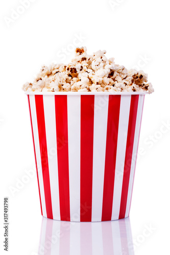 Popcorn in cardboard box isolated on white, clipping path