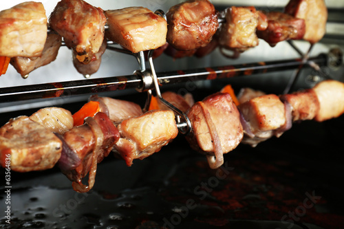 Pork kebab on grill close up