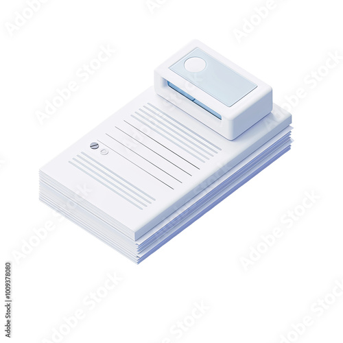 Portable Scanner Device Scanning Documents Paperless Office Digitalization Concept Minimal Design On White Background With Pen 3D Rendering PNG