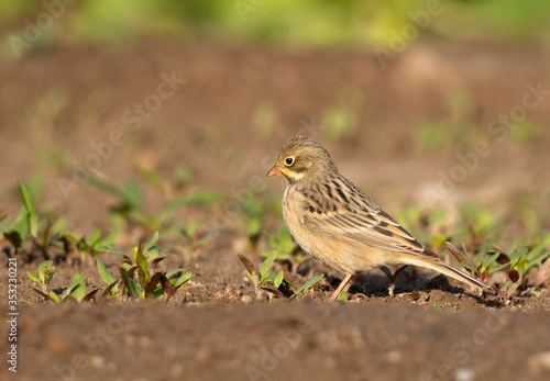 Portrait of a Corn Bunting at Buri farm, Bahrain