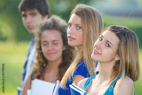 Portrait happy young students in park