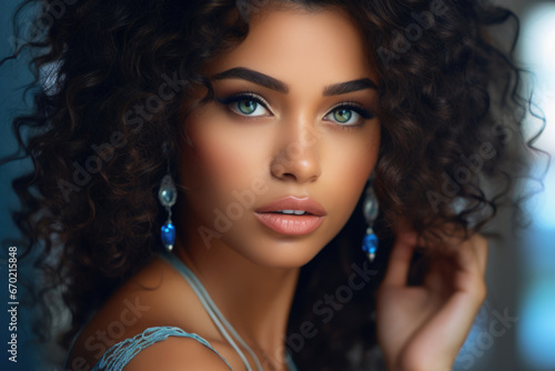Portrait of a beautiful Latin American woman with beautiful makeup. Style, fashion and beauty concept