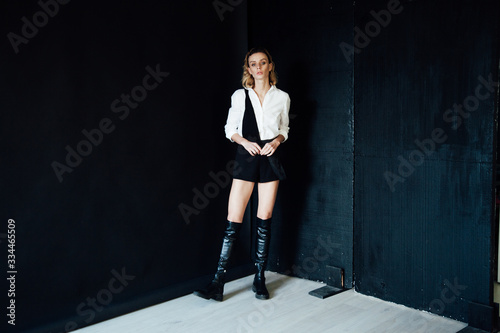 Portrait of a beautiful young fashionable woman blonde style clothing