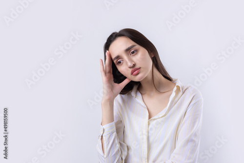 Portrait of a beautiful young woman thinking, isolated on white background