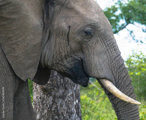 Portrait of a big beautiful elephant in natural habitat, wild animal, safari game drive, Eco travel and tourism, national park, South Africa