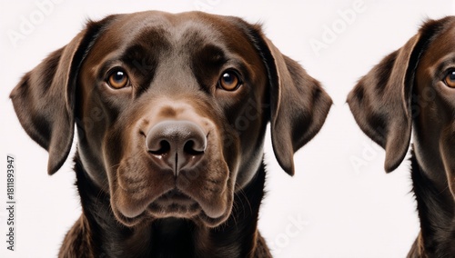 Portrait of a chocolate Labrador retriever in close-up focus