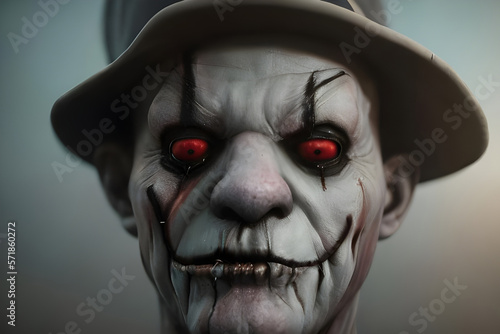 Portrait of a creepy scary clown. Halloween Horror Digital illustration. Generative AI