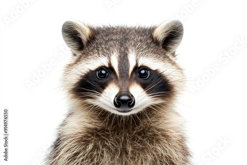Portrait of a cute funny raccoon, closeup, isolated on a white background , ai