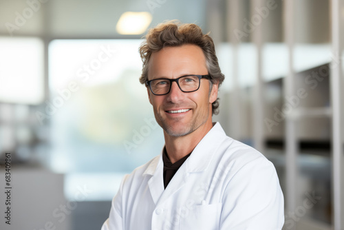 Portrait of a mature medical doctor smiling with folded arms.