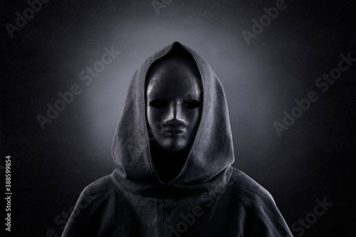 Portrait of a scary figure in hooded cloak