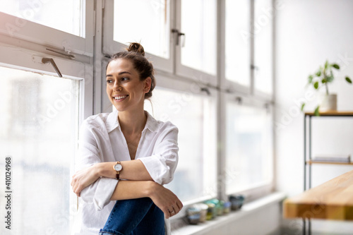 Portrait of a smiling creative woman in a modern loft space
