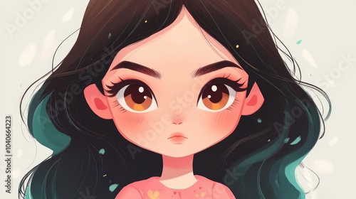 Portrait of a stunning young brunette girl wearing a pink outfit featuring long brown hair and brown eyes set against a light grey background