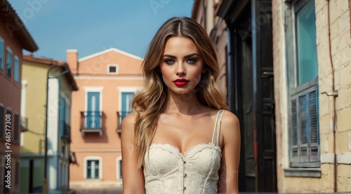 Portrait of a unique woman standing in a fashionable town