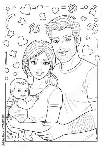 portrait of a young family. coloring book