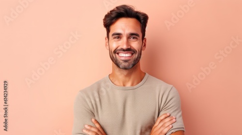 Portrait of a Young Man Wearing Casual Clothes and Smiling, Isolated on a plain background. Generative AI illustration.