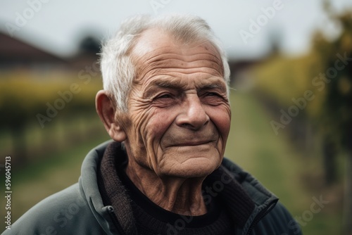 Portrait of an elderly man in the vineyard on a sunny day