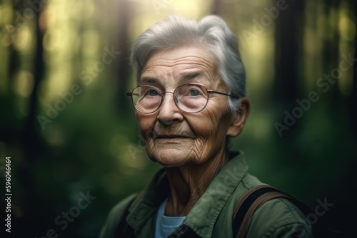 Portrait of an elderly woman in the forest. Selective focus.