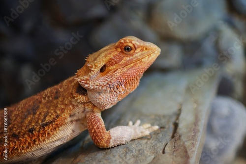 Portrait of bearded dragon head in the terrarium