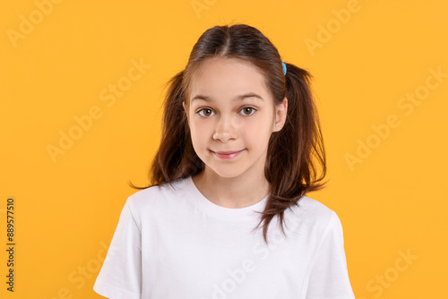 Portrait of beautiful girl on orange background