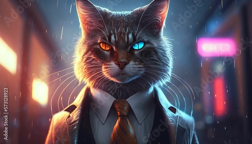 Portrait of cat in a business suit with Generative AI Technology.