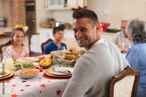 Portrait of caucasian man sitting at table for dinner