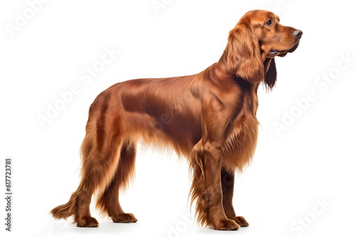 Portrait of Irish setter dog standing isolated on a white background