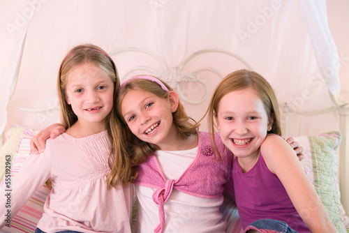 Portrait of three cute girls smiling.
