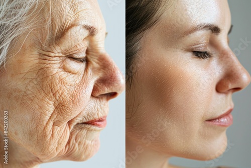 Portrait of Two Women Embracing Their Aging Beauty with Wrinkles on their Faces, Celebrating the Passage of Time